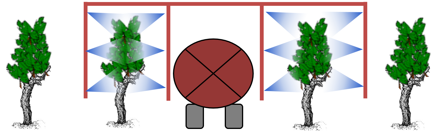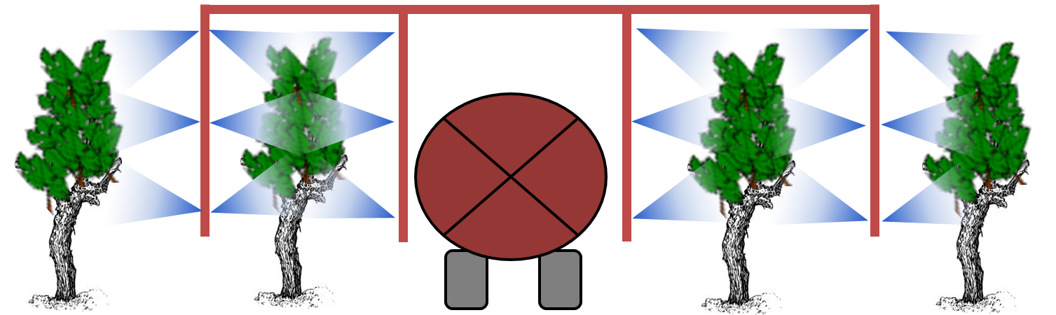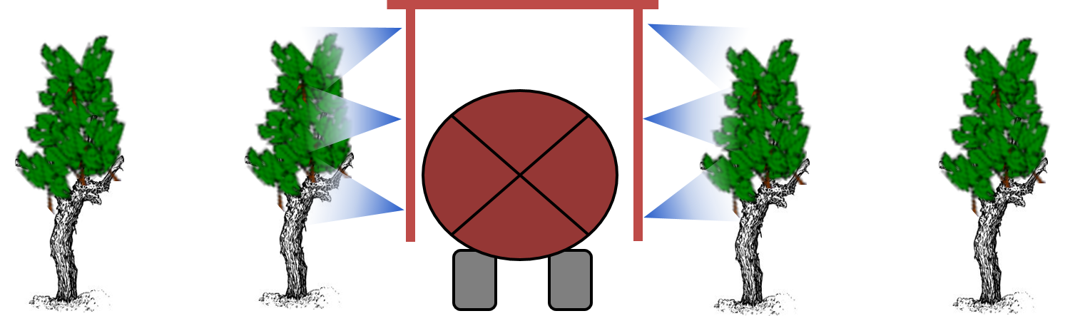- Árboles aislados (olivos en vaso): 2.0 – 3.0 km/h (max. 5.0 km/h)