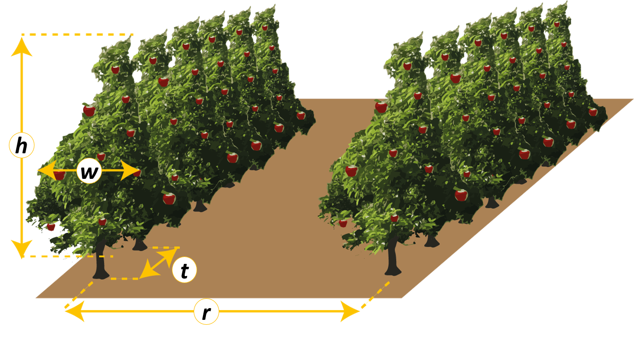 t: distancia entre pies en la fila (m) – Introducir valor (admite decimales)