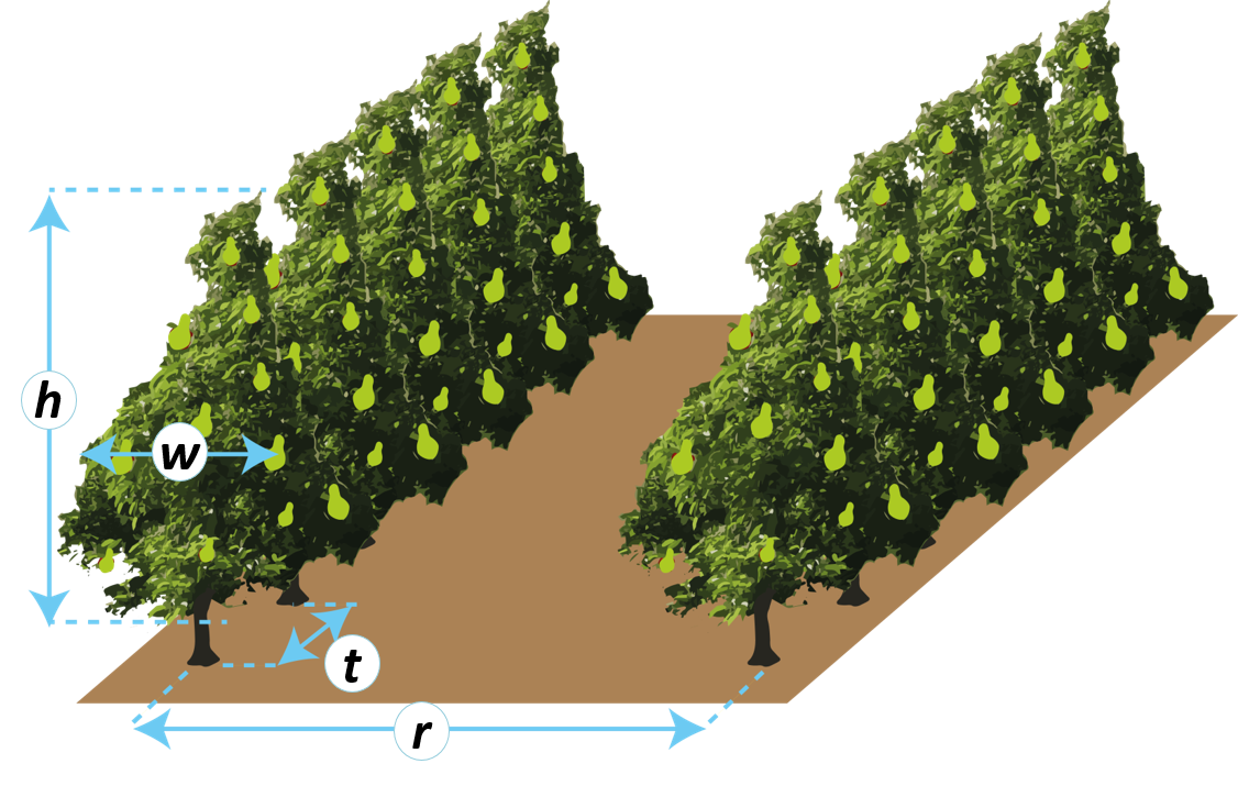 w: anchura transversal de la copa (m) – Seleccionar uno de los intervalos propuestos